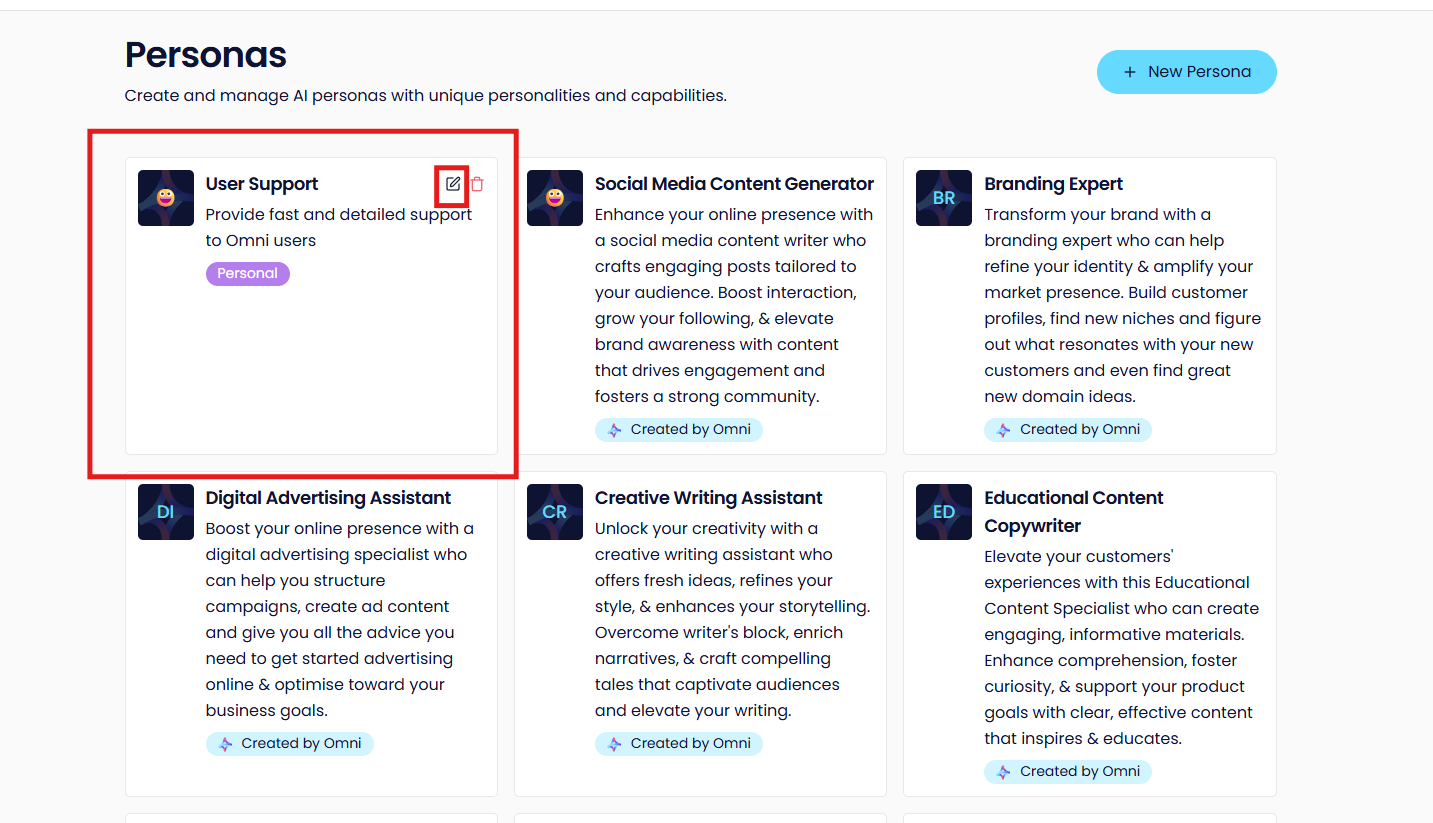 Click the pencil icon of the Persona you wish to edit;